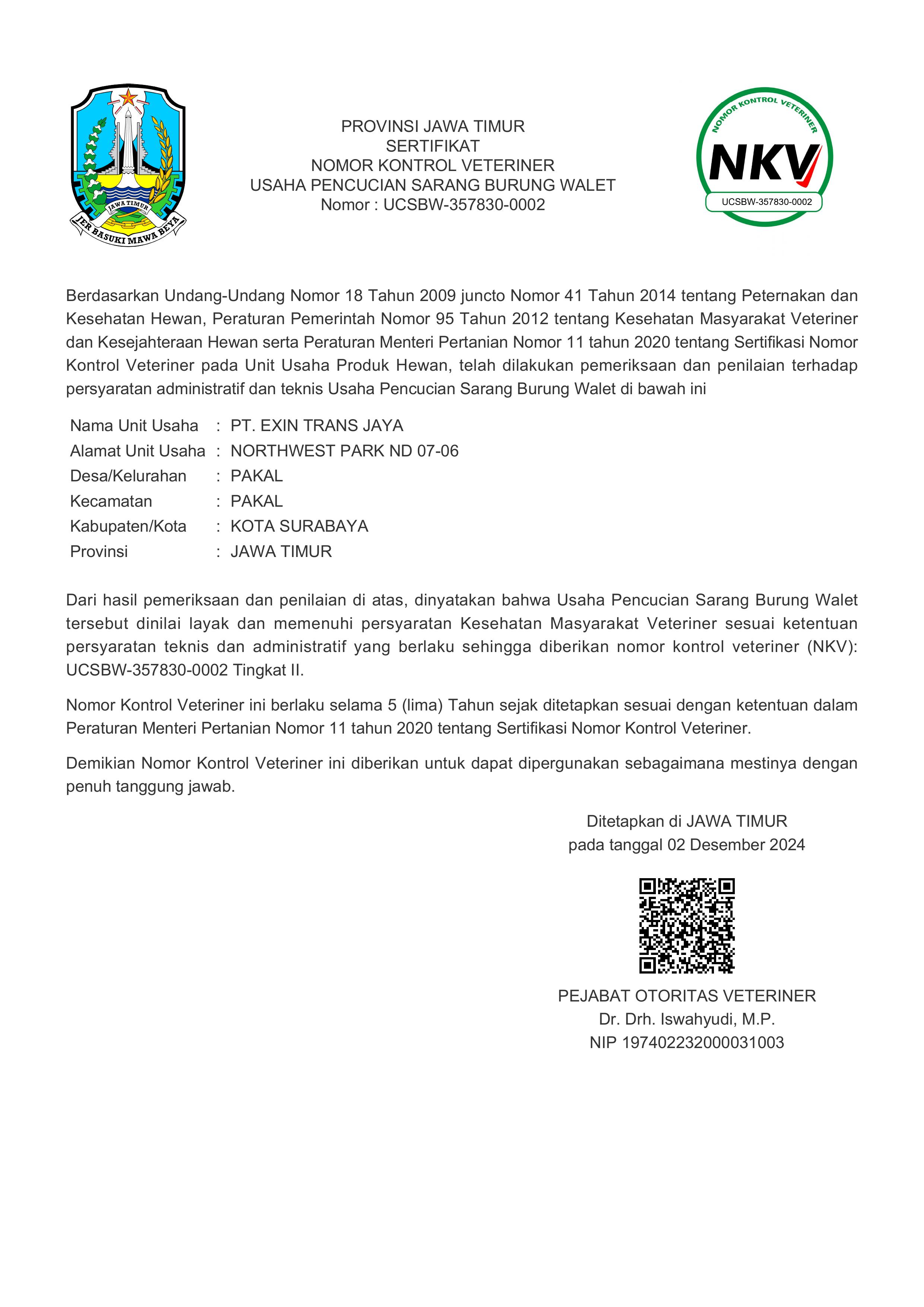 Department in Indonesia. To maintain our product quality, we have also obtained required certifications: